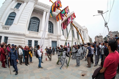 尼泊尔举办洒红节庆典 红烟漫天迎接春天