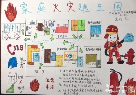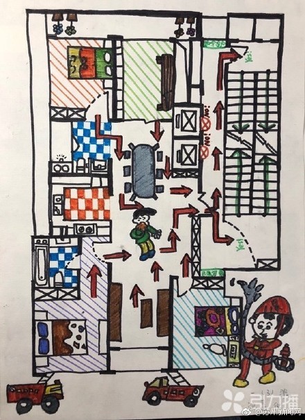 消防安全从娃娃抓起 这组“手绘家庭火灾疏散图”火了