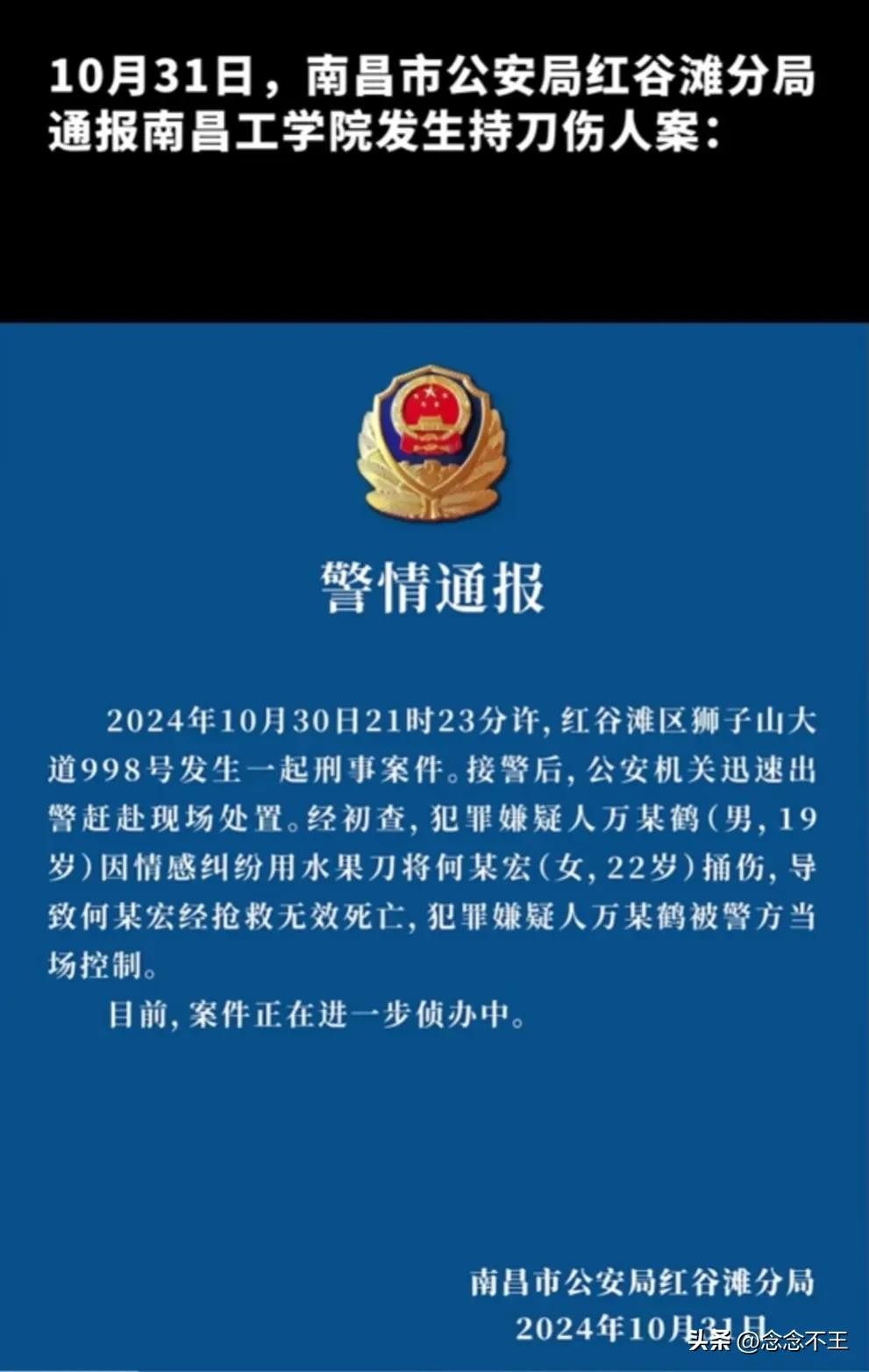 “我错了” 警方通报南昌工学院女生被男生捅刺身亡:因情感纠纷