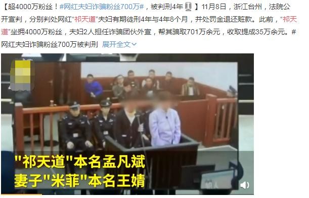 对此,小编特意翻看了一下这方面的信息,他和他的妻子被告上法庭的原因是帮“诈骗团伙”做宣传,从中获利多达30多万元!“不作就不会死”这句话说的是真对!随着案件审理,近日祁天道夫妇“诈骗案”也迎来了最终判决!祁天道妻子王晴因犯诈骗罪被判4年零8个月,祁天道也因诈骗罪被判有期徒刑4年不予缓刑!