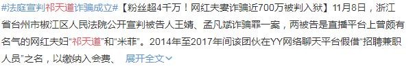 祁天道“诈骗案”终审判决:被判四年,曾悔过希望轻判被拒!