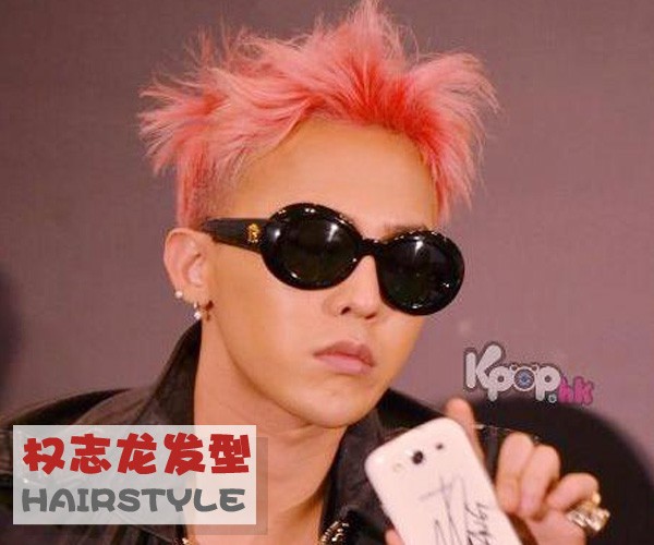 飞扬的发丝带有十足的个性,露出饱满额头也显得十分清爽的。再搭配粉红色的染发,让权志龙的潮男范推到高峰。