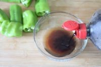 食材主料:青椒4个、大蒜5瓣、醋15ml、酱油8ml、糖8ml、盐2g