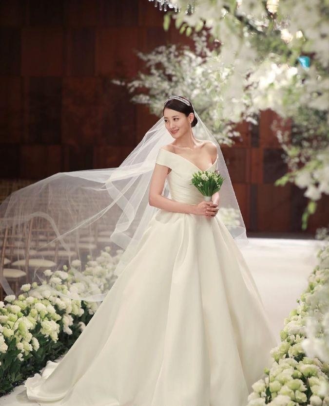当天婚礼上,金秀贤身着一袭白色露肩婚纱,非常凸显身材,看上去美丽动人,高雅大方!期间换上传统韩服的新娘子,更加温婉可人!圈内好友任时完、河锡辰出席婚礼,为两位新人送上最美好的祝福,并在社交平台上传与新郎新娘的合拍照,一众网友看完留言:太美啦!