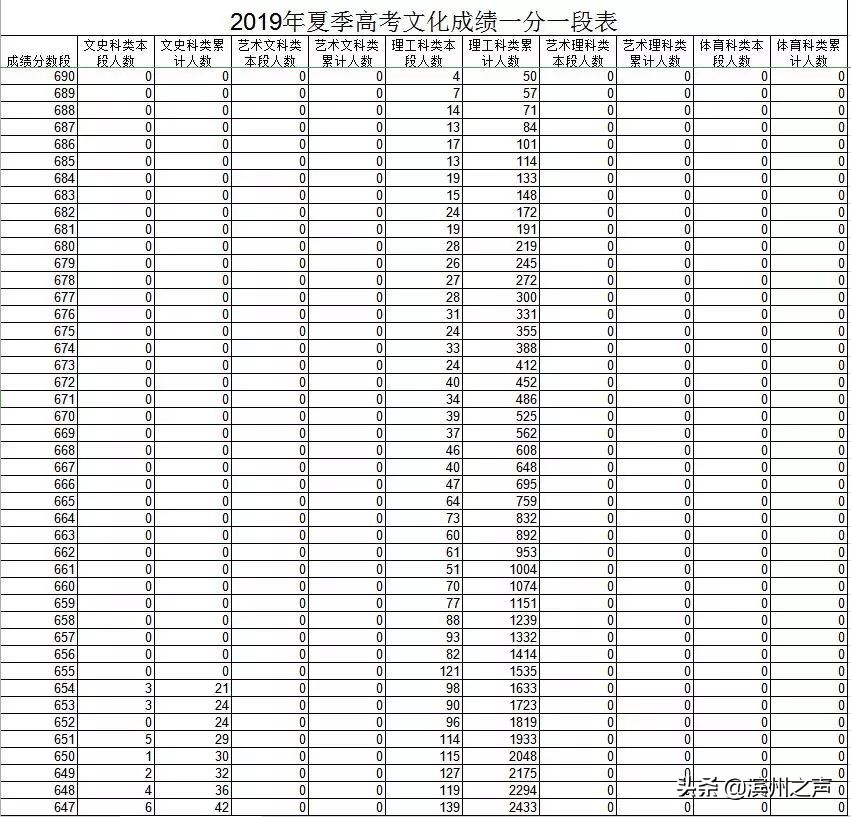 6月24日,山东省教育招生考试院公布2019年夏季高考文化成绩一分一段表。