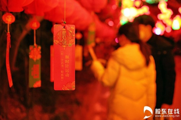 胶东在线2月4日讯(记者 汤萌 摄影 李刚)“举重比赛打一成语——斤斤计较。”“驼背公公,力大无穷,爱坨什么,车水马龙,打一物品——桥。”在烟台山景区的灯谜区,众多市民兴致勃勃地聚在一起猜起灯谜。