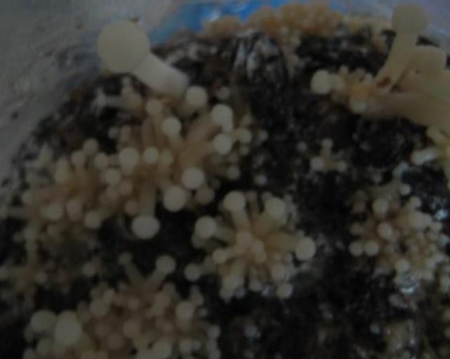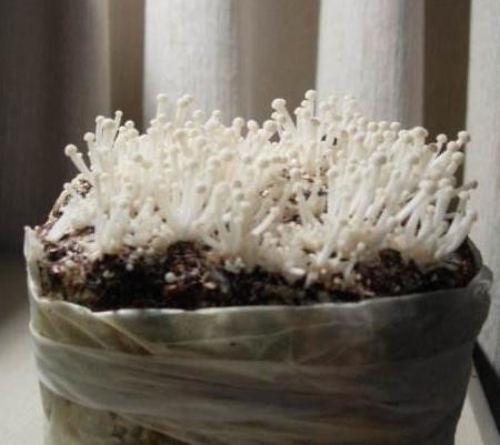 1,大家都知道金针菇是真菌繁殖,我们在买金针菇的时候,底部都带上了一部分真菌培育土。我们选择一些长得壮实的金针菇,就把带着培育土的根部一起切下来,尽量选择新鲜的金针菇,这样根部的菌种成活率更高。如果觉得用根部繁殖麻烦,可以直接购买金针菇的菌包,只要注意养护方法,都能长出金针菇。