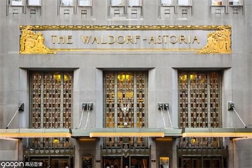 纽约华尔道夫酒店(The Waldorf Astoria),这座位于曼哈顿中城Park Ave上富丽堂皇的的酒店,于1893年建成,横跨49街至50街的整个街区,楼高42层,含有1413间套房,是世界上第一家摩天大楼酒店,也是当时世界上最高最大的酒店。图片来源:高品图像