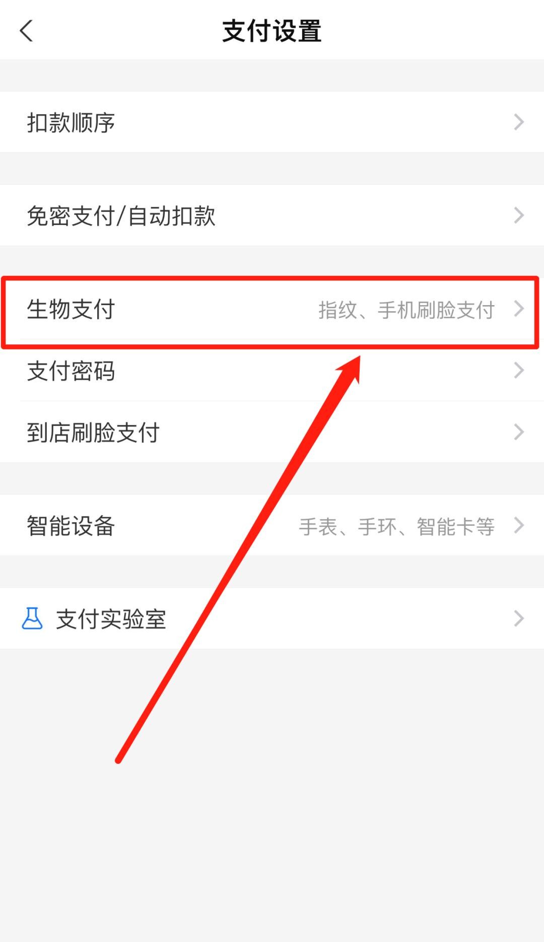 点击“生物支付”选项。
