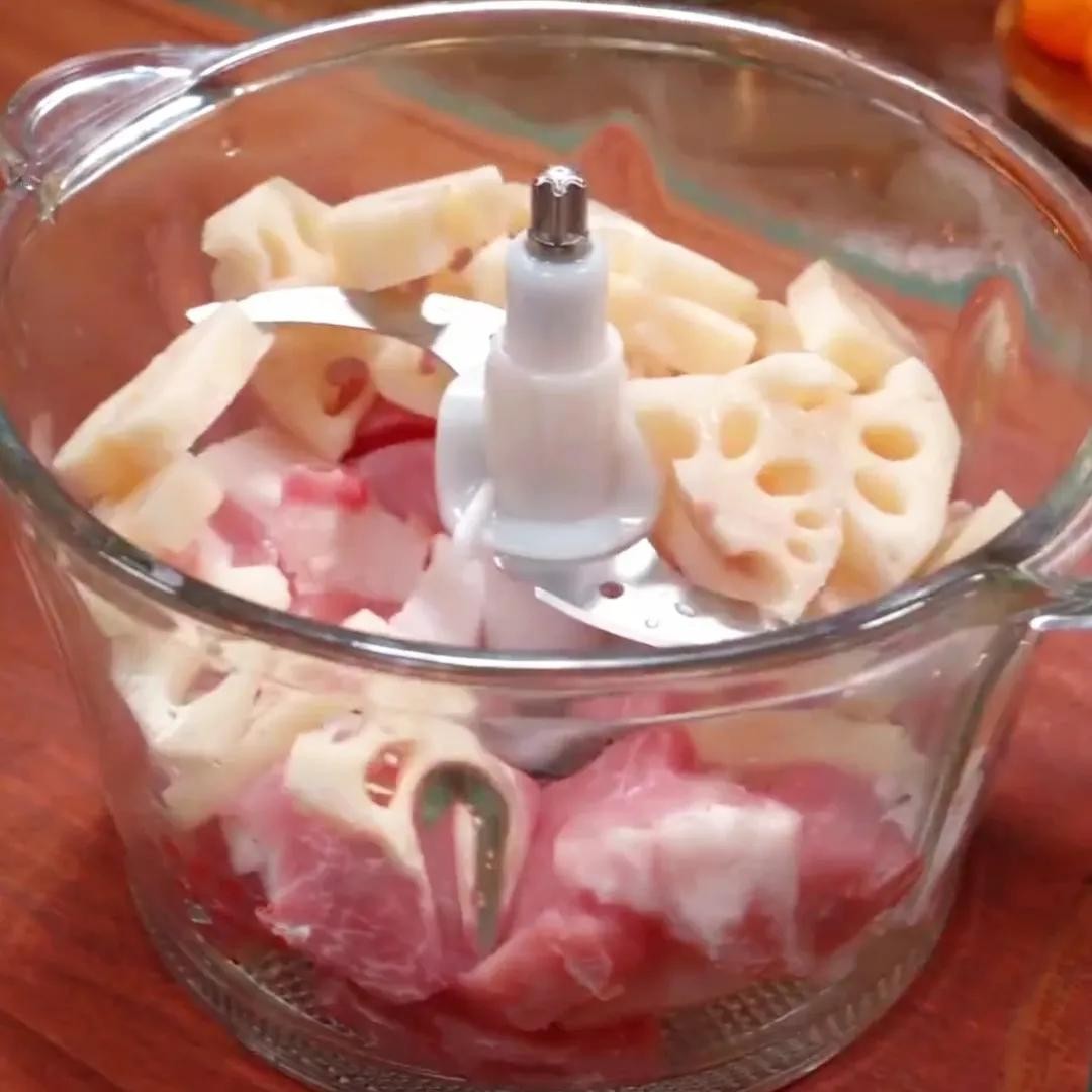 首先,要选择新鲜的猪肉,最好是猪的里脊肉,这部分的肉质细嫩,口感最佳。将猪肉、莲藕切成小块,放入搅拌机中搅碎成肉末。注意不要搅得太细,以免影响口感。