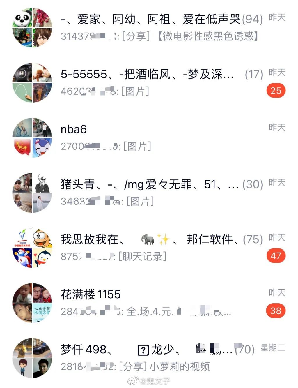 有网友表示,自己的QQ号列表里一下子冒出一堆群组,几乎都在发涉黄信息。