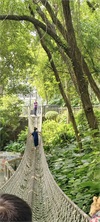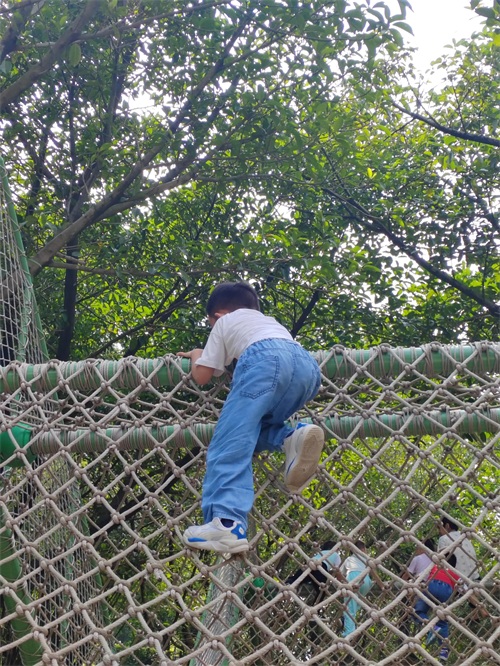 值得一提的是,大门进去就会有一个丛林飞越的吊桥,可以带小朋友挑战一下,还有一个呐喊喷泉,通过你发出的声音大小控制喷泉的高度,最高可以15米,园区里面还有一个攀爬区域,设施比较完善,比一般儿童公园的都要好玩。
