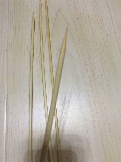 第一步:用剪刀将竹签,剪成“八字”豁口。
