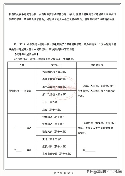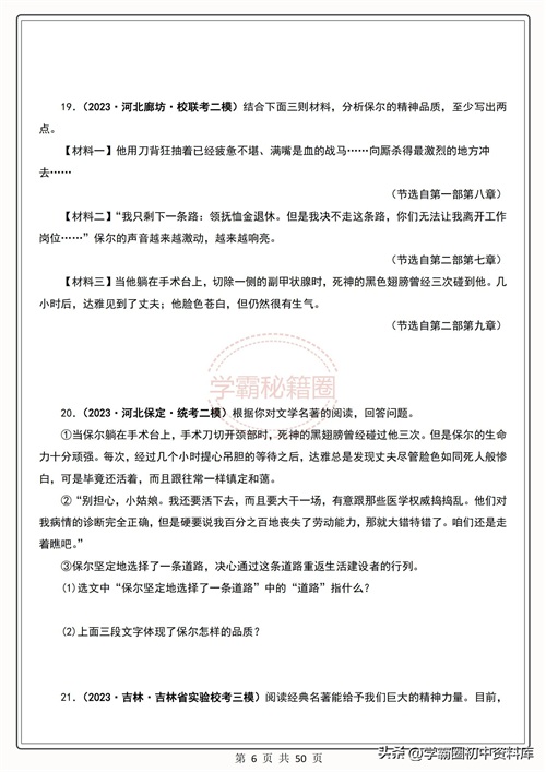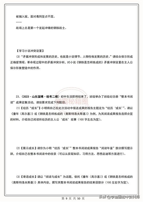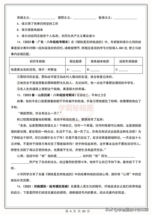 2025春七年级名著《钢铁是怎样炼成的》历年各省都在考的28道题