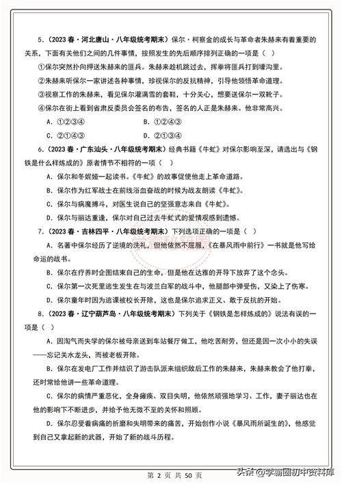 相信通过这28道题目的练习和解析,广大七年级学生将能够更加全面地掌握《钢铁是怎样炼成的》这部名著,提升自己的文学素养和综合能力。让我们一起走进这部经典之作,感受保尔·柯察金的坚韧与刚强,汲取成长的力量和智慧!