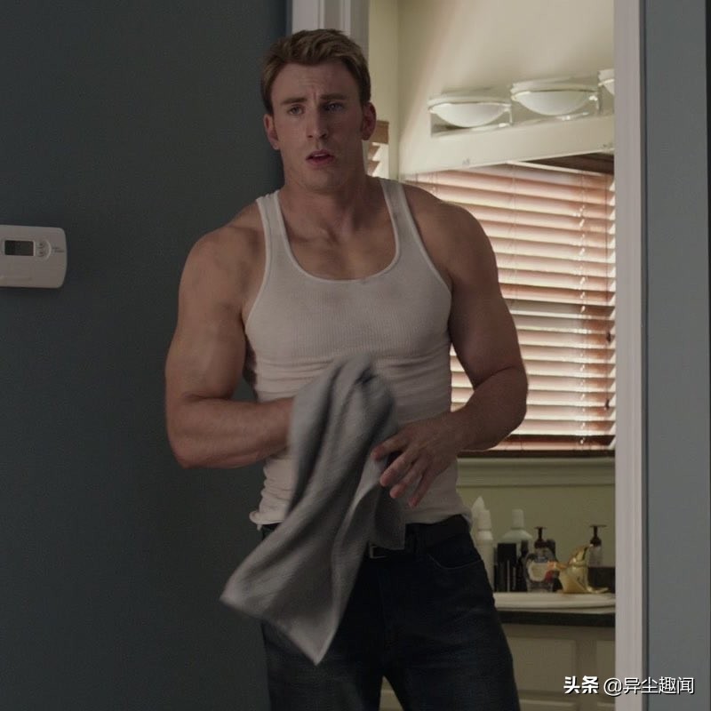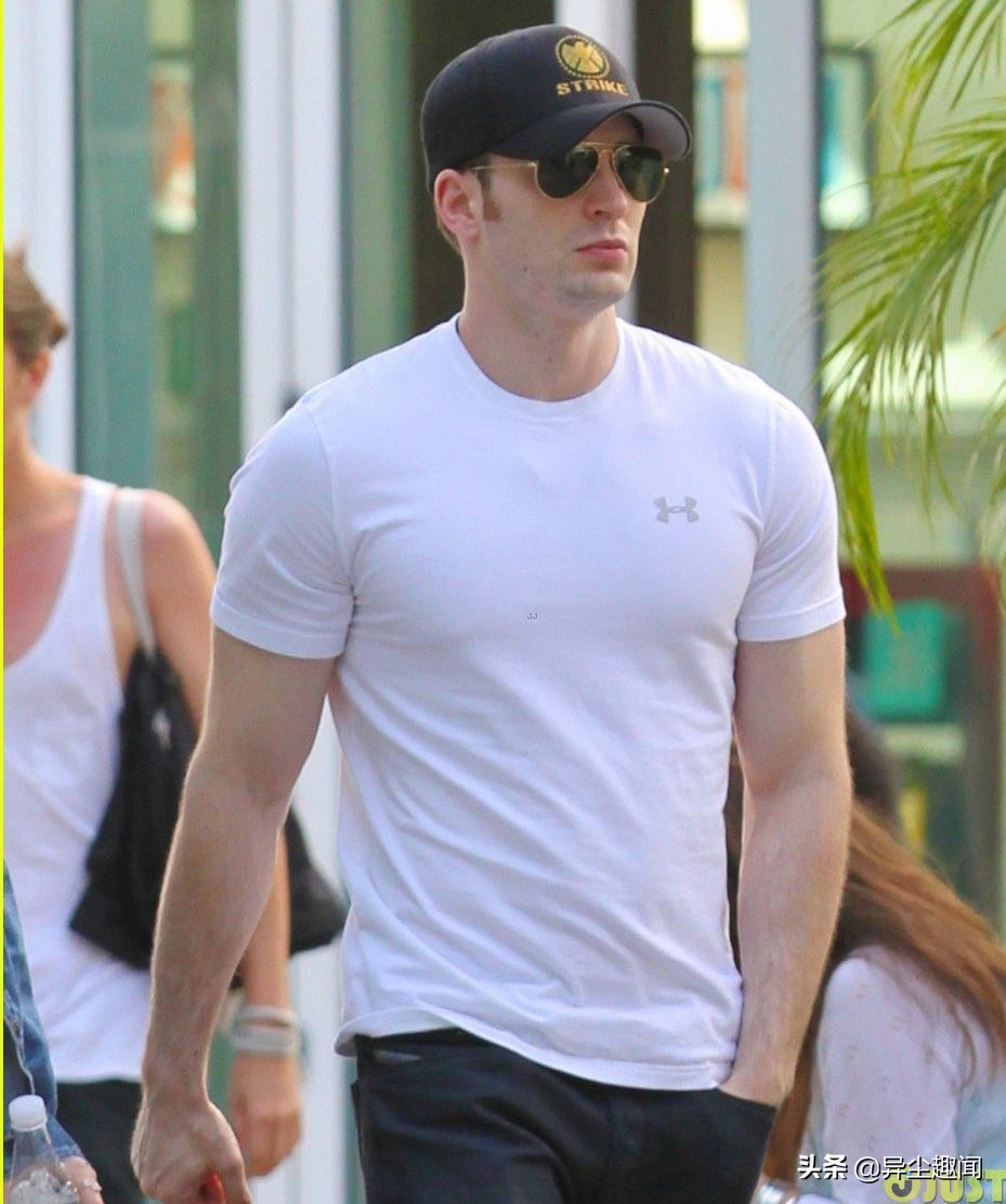 就连最没时尚感的老头汗衫,只要穿在克里斯·埃文斯身上就帅气度秒提升,像是大力水手般的二头肌根本太犯规!