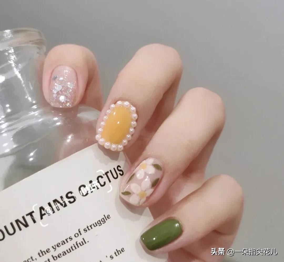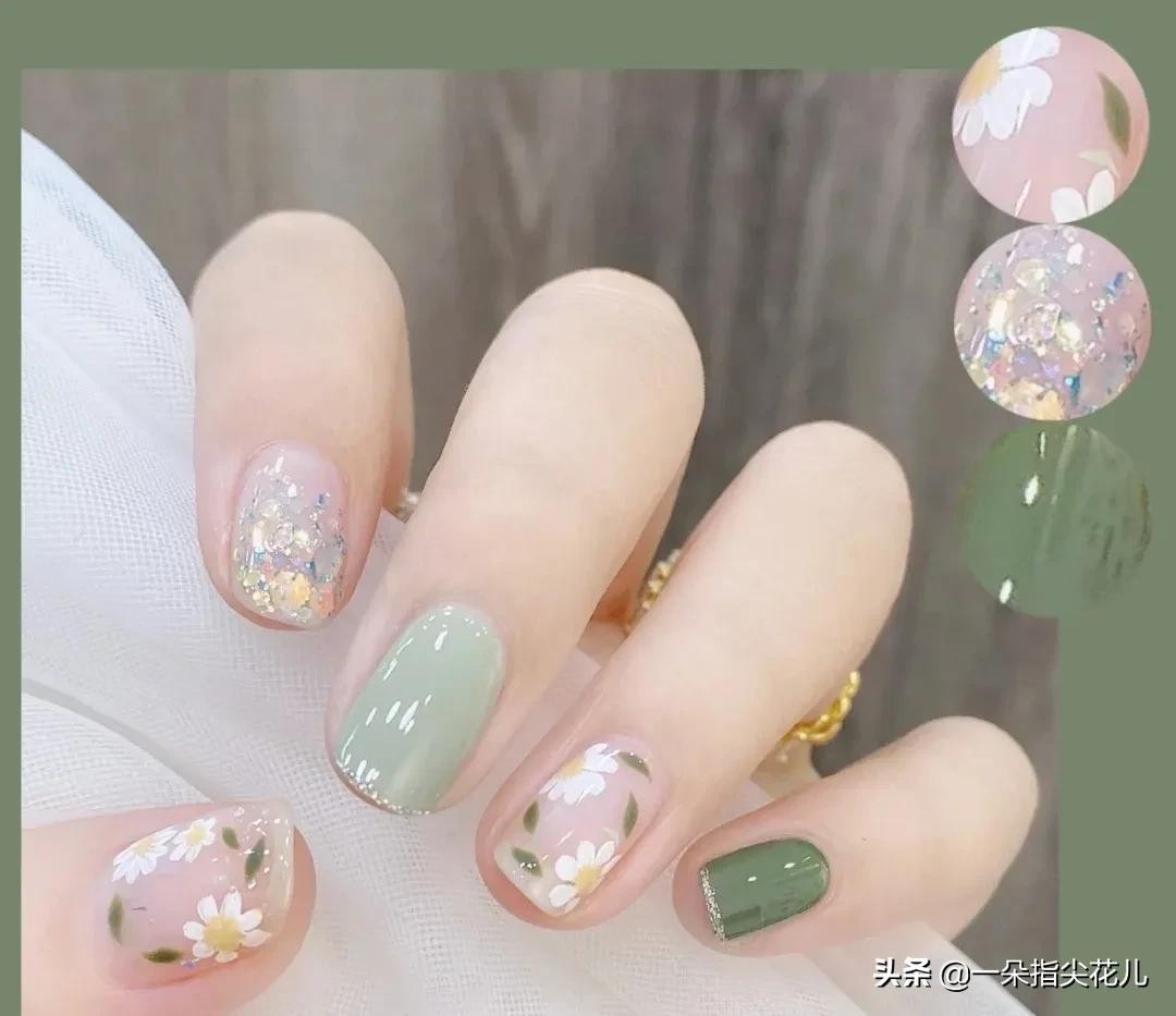 这种清新不俗气的花卉美甲搭配,简直太好看。没做过的姐妹,一定要试试。
