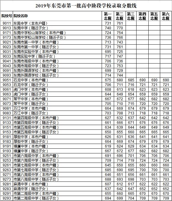 刚刚!2019年东莞中考录取分数线公布!