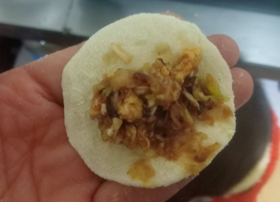 第七步:放入馅,按自己喜欢的方式包成饺子