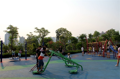厦门儿童公园按不同年龄段划分为幼童区、攀爬拓展区和探险游乐区等区域,并采用无需电力等能源驱动的非动力游乐设施,特别强调儿童和大人共同参与。