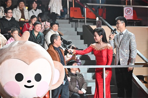 “潮州人过年要吃什么美食?”“潮州人过年都干什么?”在互动环节,“府楼猴”与主持人一起到观众席,以中国的春节成功申遗和潮州年俗为主题进行互动问答,将全场气氛推向高潮。
