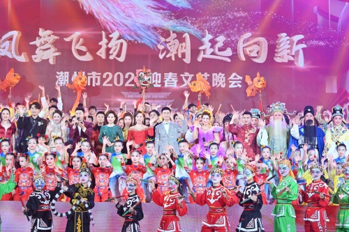 1月23日晚,潮州市2025迎春文艺晚会在潮州体育馆内上演。晚会以“凤舞飞扬 潮起向新”为主题,涵盖歌曲、舞蹈、器乐演奏、讲述等多种节目,融合潮剧、潮州音乐、潮语原创歌曲、潮州鲤鱼舞等潮州传统文艺形式,为广大市民献上一场“潮”味满满的视听盛宴。
