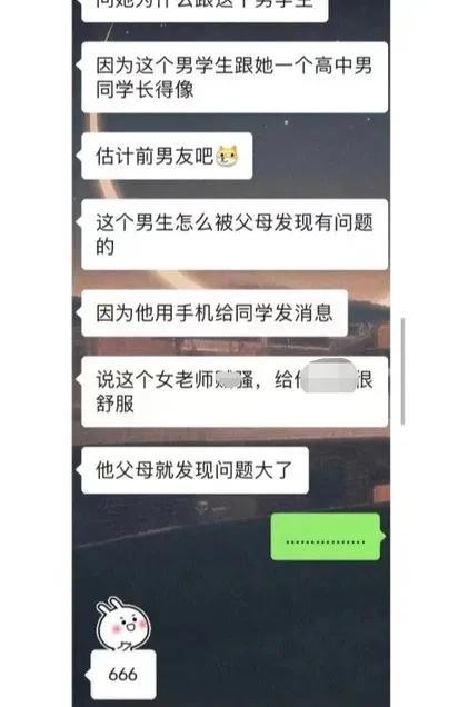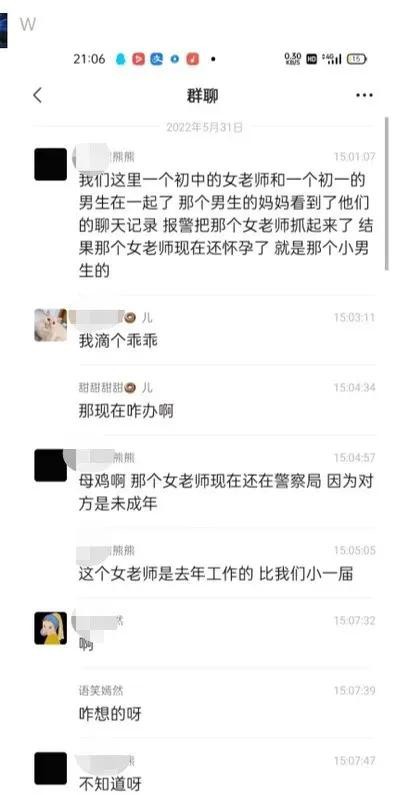 2022年5月底,陈同学的父母偶然间翻看其手机,发现了他与其他同学的聊天记录。聊天中大多数是提到陈同学与女老师的,其中说了一些难以启齿的话语,让孩子的父母感到问题很严重了,因此选择了报警处理。