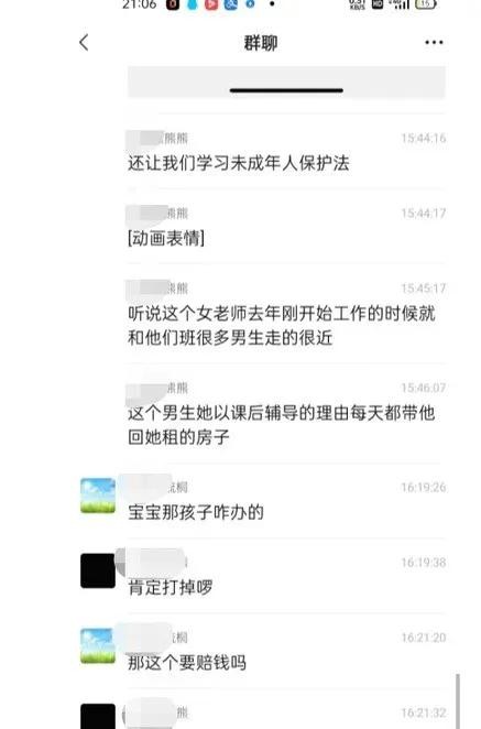 另外,群里有知情人爆料称,该老师刚刚工作时,就与班里很多男生走得很近。