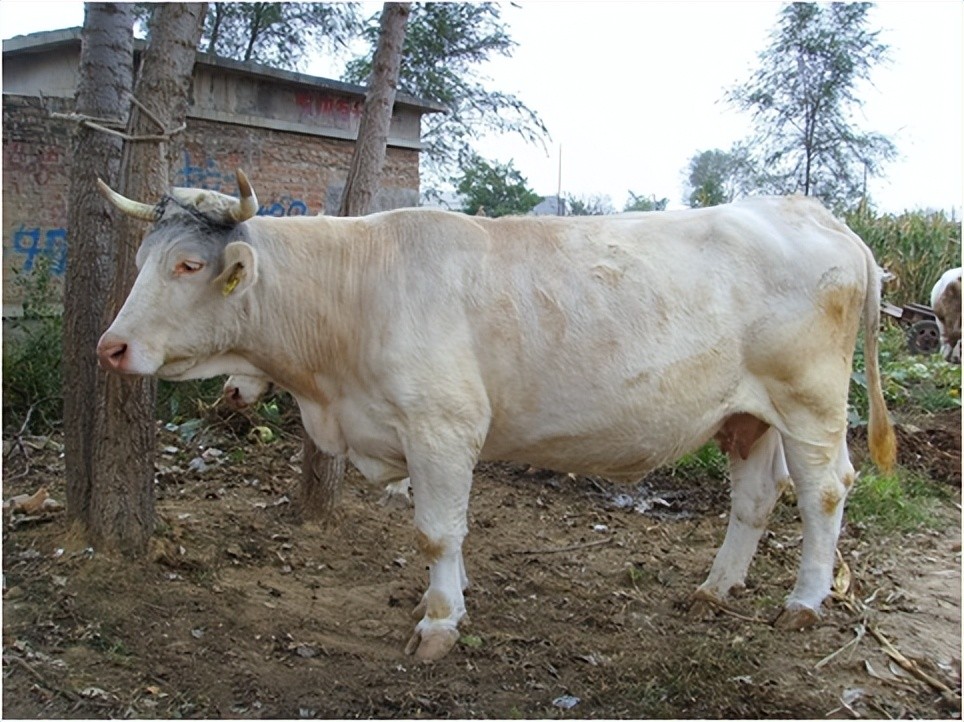 外貌特征:该牛体型大,骨骼细,全身肌肉发达。毛色为乳白色或浅灰色,公牛肩胛部毛色较深,黑眼圈,尾帚黑色。