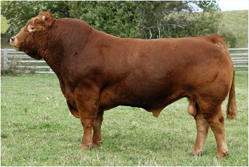 发育特点:利木赞牛产肉性能高,胴体质量好,眼肌面积大,前后肢肌肉丰满,出肉率高。肉色鲜红、纹理细致、富有弹性、大理石花纹适中、脂肪色泽为白色或带淡黄色。成年公牛体重900-1100Kg,母牛636-727Kg。屠宰率达63-71%。