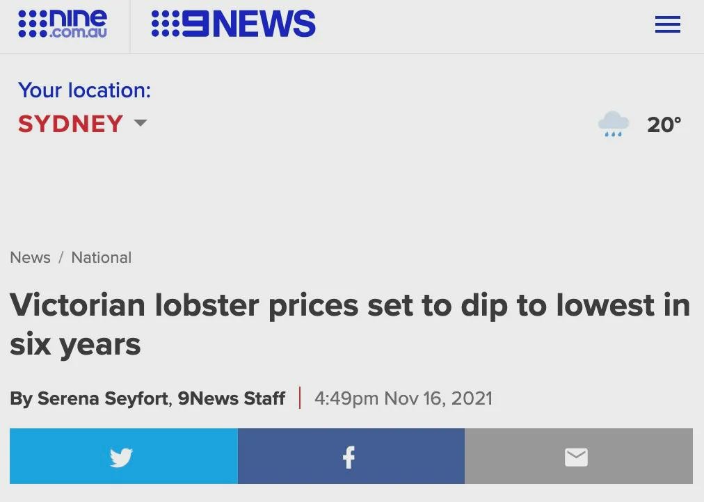 最近,澳洲龙虾预计价格大跌的消息刷爆各大澳媒。