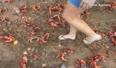 超过5000万只火红蟹将从丛林“徒步”,来到位于西澳大利亚州西北的国家公园海岸。