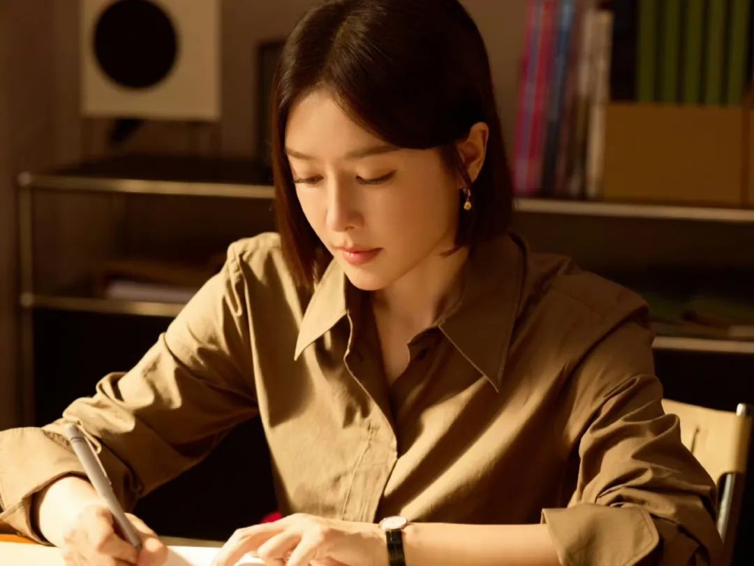 整体来看脸型偏方,下颌线条较为 硬朗 ,也是性格坚毅、有主见的表现,与观众以往印象中恋爱脑柔和、圆润的面部特征,让人很难将她与为爱情不顾一切的形象联系起来。