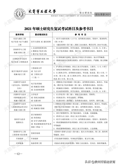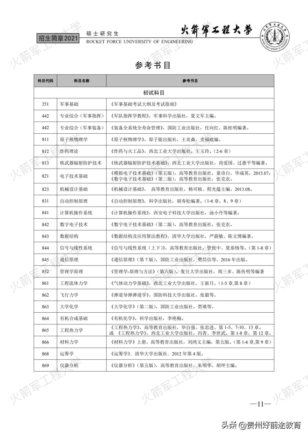 4、考试大纲和往年专业课试题参考资料可在火箭军工程大学招生信息网或军内网研究生院网站中下载。