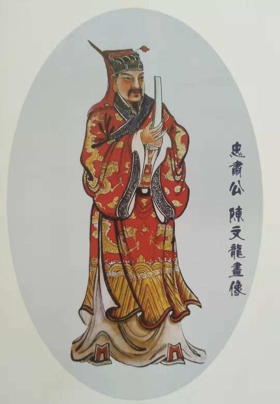 陈文龙(1232~1276),福建兴化(今福建莆田)人,初名子龙,字刚中。宋度宗为之改名文龙,赐字君贲,号如心,宋丞相陈俊卿五世从孙,抗元名将,民族英雄。宋度宗咸淳四年(1268年)中状元。陈文龙深受南宋朝廷器重,出任多个重要职位,颇有成就。元军南下,在各地守将纷纷投降下,招降使者两次至兴化劝降文龙,均被其焚书斩杀。后被捕押送杭州途中开始绝食,经杭州谒拜岳飞庙时,气绝而亡,葬于杭州西湖智果寺旁。明朝诏封文龙为福州府城隍,福州人称之为“尚书公”。明成化年间诏封一同为国捐躯的陈文龙叔叔陈瓒为兴化府城隍。