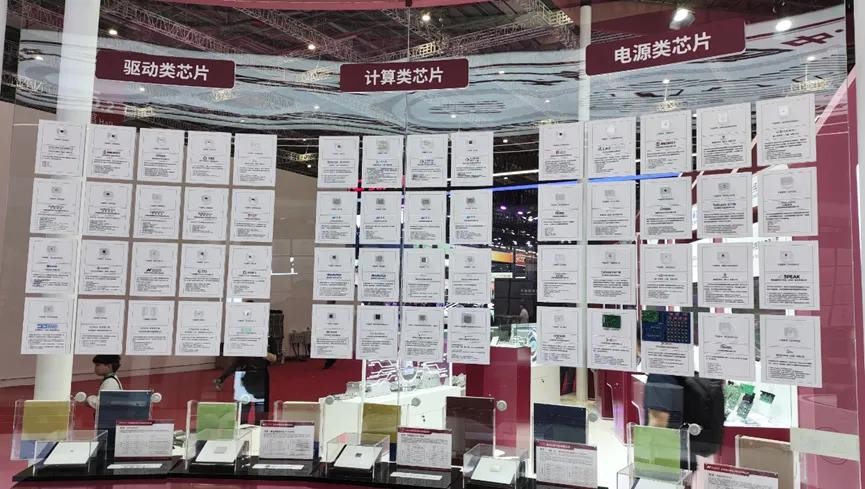 虽然展台的面积不大,但里面展示墙上却挂满了各种中国企业自主研发的汽车芯片。