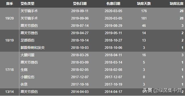 托万的伤病历史清单