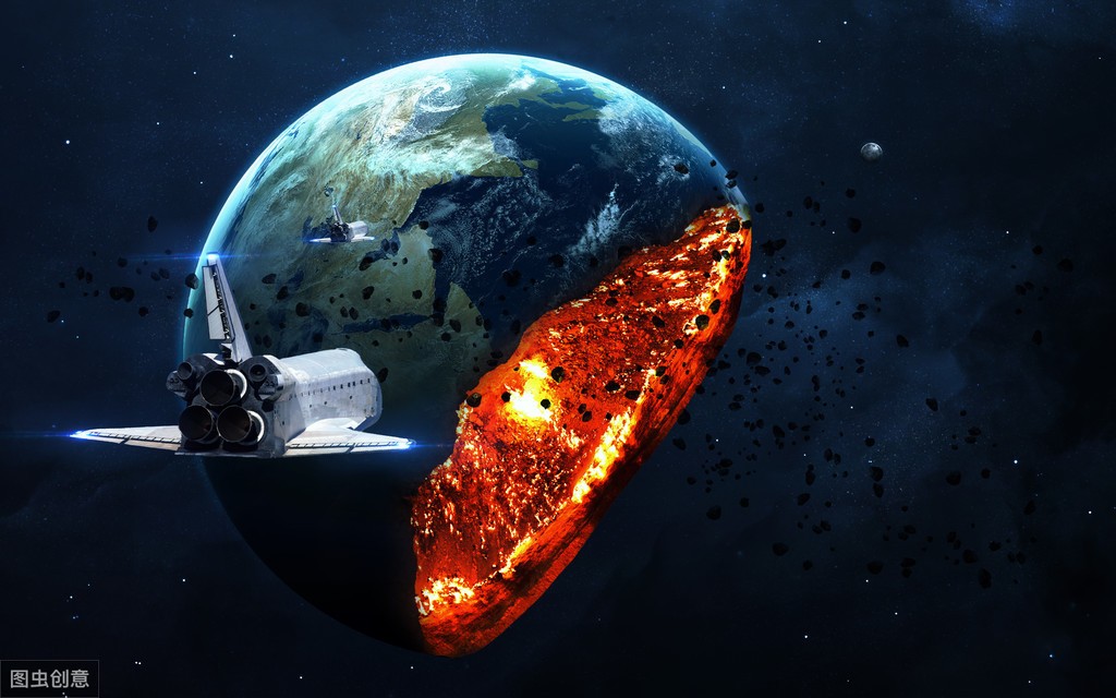 (解说:这个目前没人定论,个人推理两个:1,由于地震/火山/海啸/核战争导致城市受创;2.由于彗星或者外星飞船击落太空站和卫星)