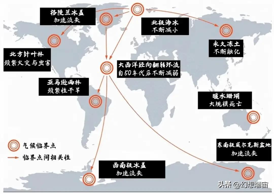 截止目前地球15个气候临界点已被激活9个,激活数超过了一半,我们大家似乎可以感受蝴蝶效应末端的类似情况,而且这还在进一步的恶化。如果15个全部被激活,那么地球将不可逆转的走向崩溃。