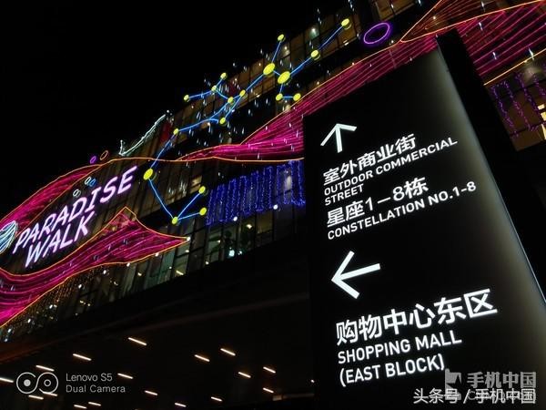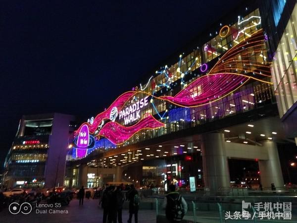 我们可以看到,即使是在光线不足的夜里,联想S5的水平依旧可圈可点。画面亮度不错,也没有出现明显的噪点。在暗光或者背光的情况下,建筑物的细节也保留的不错。画面无论是纯净度、明亮度还是色彩还原度都十分不错。唯一的不足就是在某些光源复杂的情况下,建筑细节和文字清晰度只能二选一。其实这不能怪联想S5,毕竟夜景一直以来都是最最考验手机相机的场景。