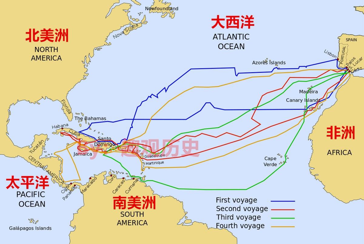 克里斯托弗·哥伦布通常被称为新大陆的"发现者",他在1492年至1504年间开始了4次横跨大西洋的航行。