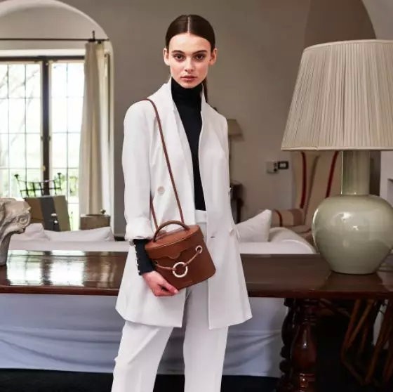 Severine也是一款水桶型手袋,而它的别致之处在于是与名媛Olivia Palermo合作推出的限量款。拉链翻盖式设计让这款包包更具个性,打开后映入眼帘的印花里衬营造出一种别有洞天的感觉。设计灵感源于现代建筑的Severine包包,在外观上比Santina更具有结构性和几何感。