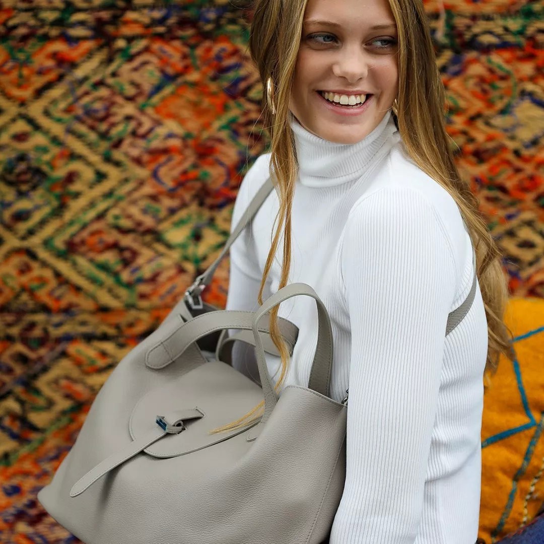 Thela Bag无疑是必须要首先推荐的一款包型,这也是我那位小伙伴亲自使用后的切身反馈。品牌独具的反转式手把让一款原本造型普通的“饺子包”变成了别致的“摇篮包”,加之配备了可斜背的长肩带,让这款看似貌不惊人的手袋瞬间变幻出5种背法(原谅我又一次想到了LOEWE的吊床包和几何包),是一款超具实用性的通勤&休闲通用手袋。