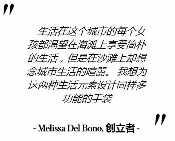 意式的奢华别致,英伦的酷劲十足,在这两个国家的常年生活和工作经历,赋予了Melissa丰富的创意和灵感——于是,一枚有着传统西西里柳条篮风格的手袋在融合了两国时尚元素后以品牌的招牌产品“BB包”在2005年正式面世,一经推出,便被英国版《Vogue》誉为“值得关注的品牌”。