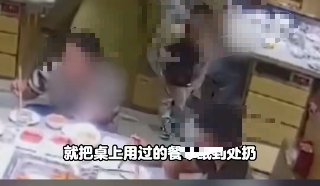 不止如此,高童还把旁边的配料,酱料等弄了一地,这时候服务员过来制止高童说“小朋友,你不能这样做,这种行为是不文明的”。