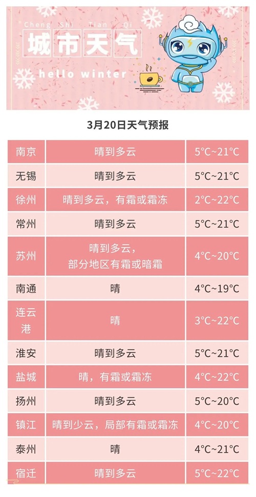 3月20日江苏各市天气预报