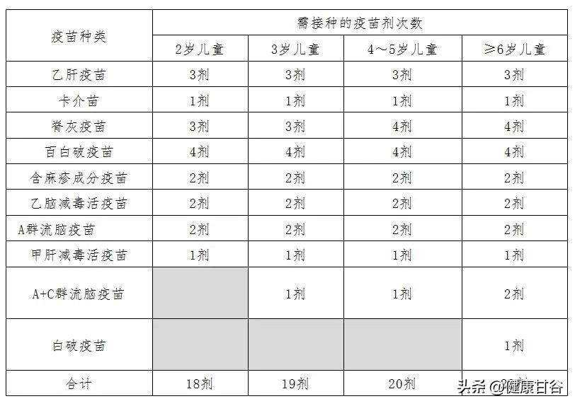 的疫苗和接种剂次数