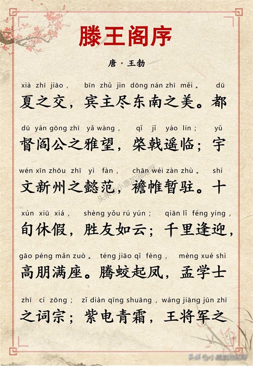 千古名篇 人生必读:王勃《滕王阁序》全文带拼音译文完整版