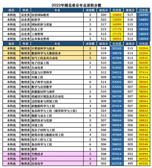 一、2024年分专业录取分数及位次值【湖北省】