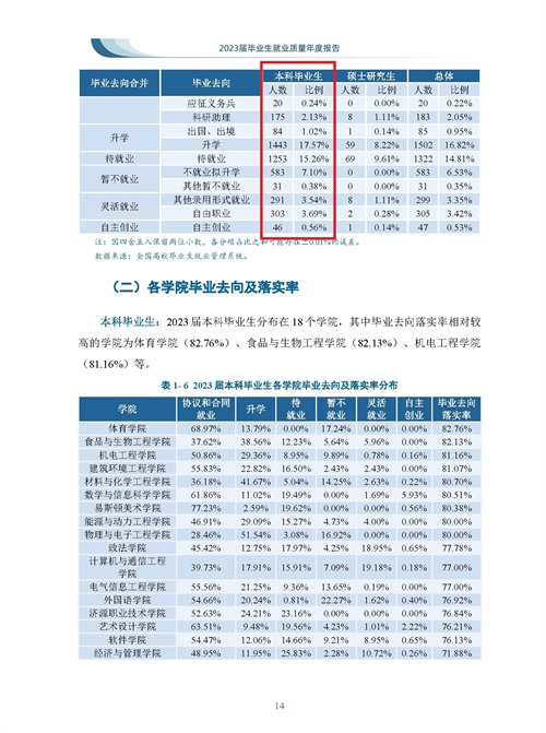 2023届本科生就业率77.26%,其中升学率18.59%。